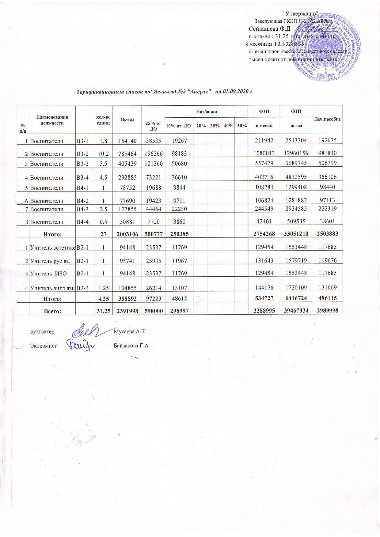 01 сентябрь 2020 0 1 2 3 4 5 Тарификационный список на 01.09.2020 Осы беттің QR-коды:QR-код этой страницы: