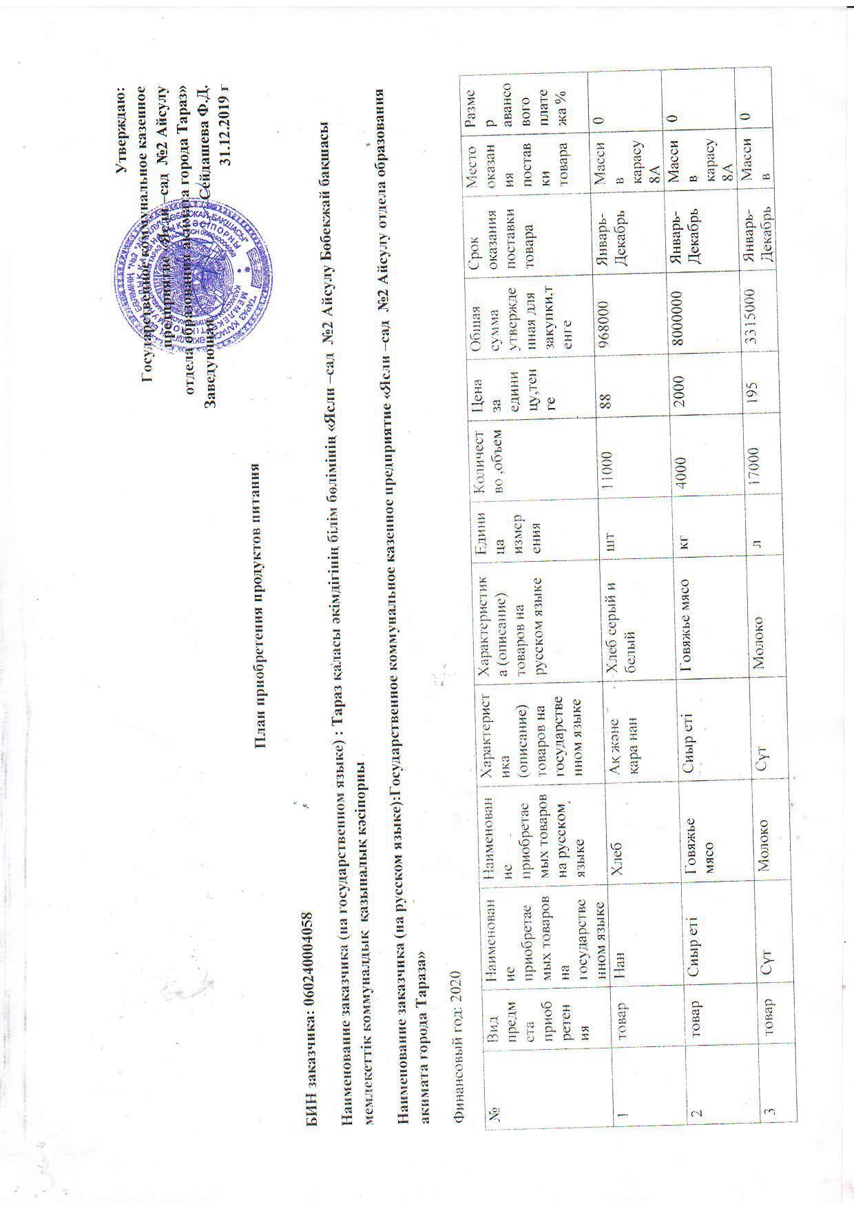 31 декабрь 2019 План приобретения продуктов питания 2020 год Осы беттің QR-коды:QR-код этой страницы: